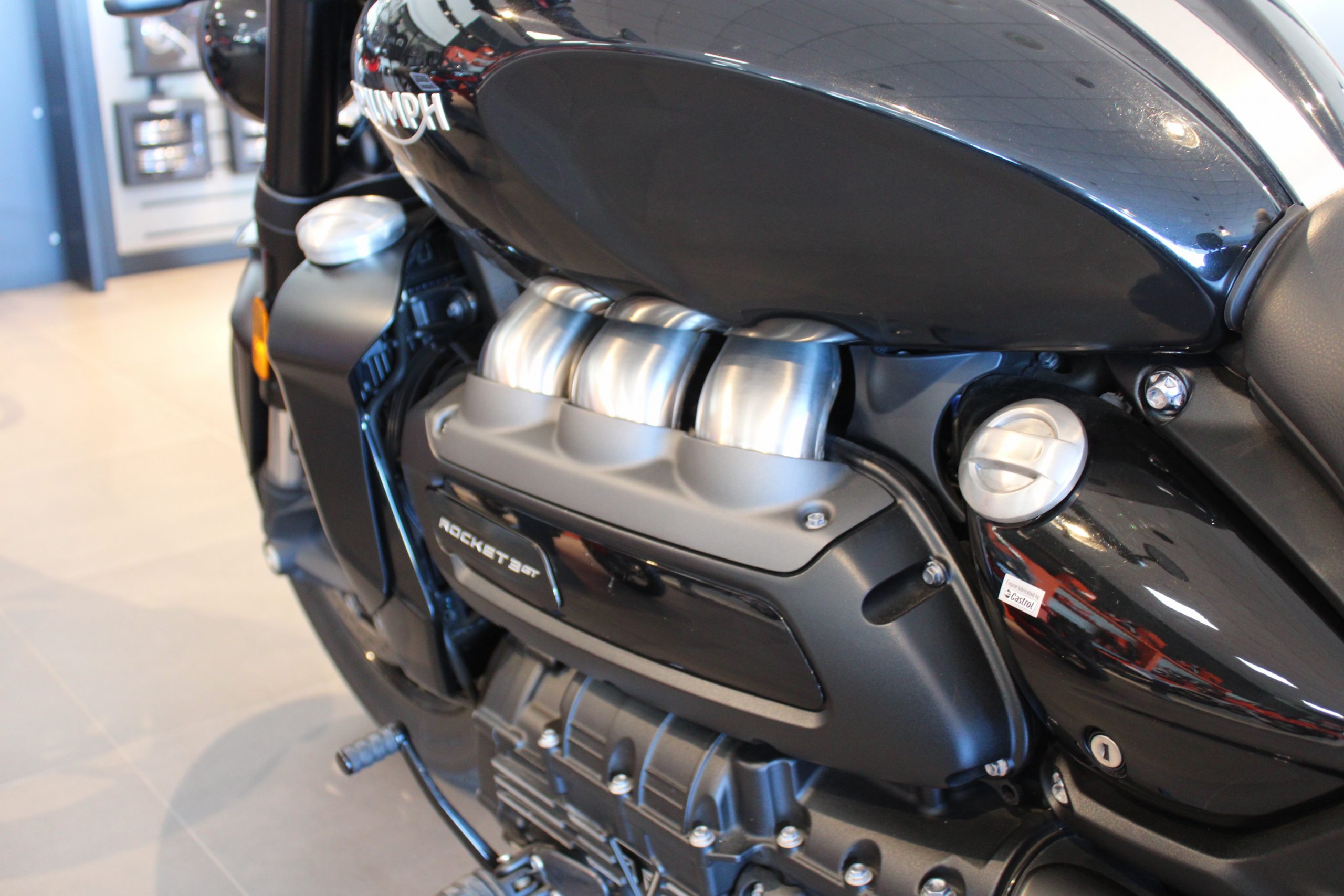 La potencia máxima es de 167 CV a 6.000 rpm, un 11% superior a la versión anterior, con más empuje desde tan solo 3.500 rpm hasta la zona roja de 7.000 rpm, y gracias a ello la Rocket 3 ofrece una conducción emocionante con la tecnología y las prestaciones más avanzadas que se hayan visto en una Rocket.
